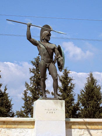 Σύμφωνα με την παράδοση ο Ξέρξης είχε στείλει αγγελιαφόρο να ζητήσει από τους Έλληνες την παράδοση των όπλων τους, λέγοντας ότι μόνο από τα βέλη που θα ριχτούν εναντίον τους θα σκοτεινιάσει το φως του ήλιου. Ο Σπαρτιάτης Διηνέκης απάντησε τότε : «Καλά νέα μας φέρνεις ξένε, γιατί θα πολεμήσουμε στη σκιά». Την τελική απάντηση όμως έδωσε ο ίδιος ο Λεωνίδας λέγοντας το περίφημο «Μολών Λαβέ».